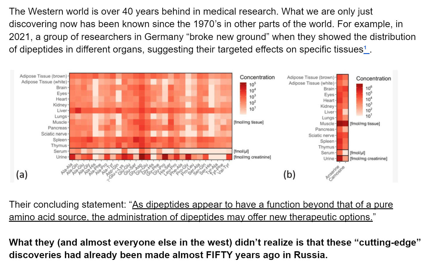 Western scientists are trying to reinvent the wheel, unaware peptides have been PROVEN to do what they're trying to do... almost 50 YEARS AGO in other parts of the world.